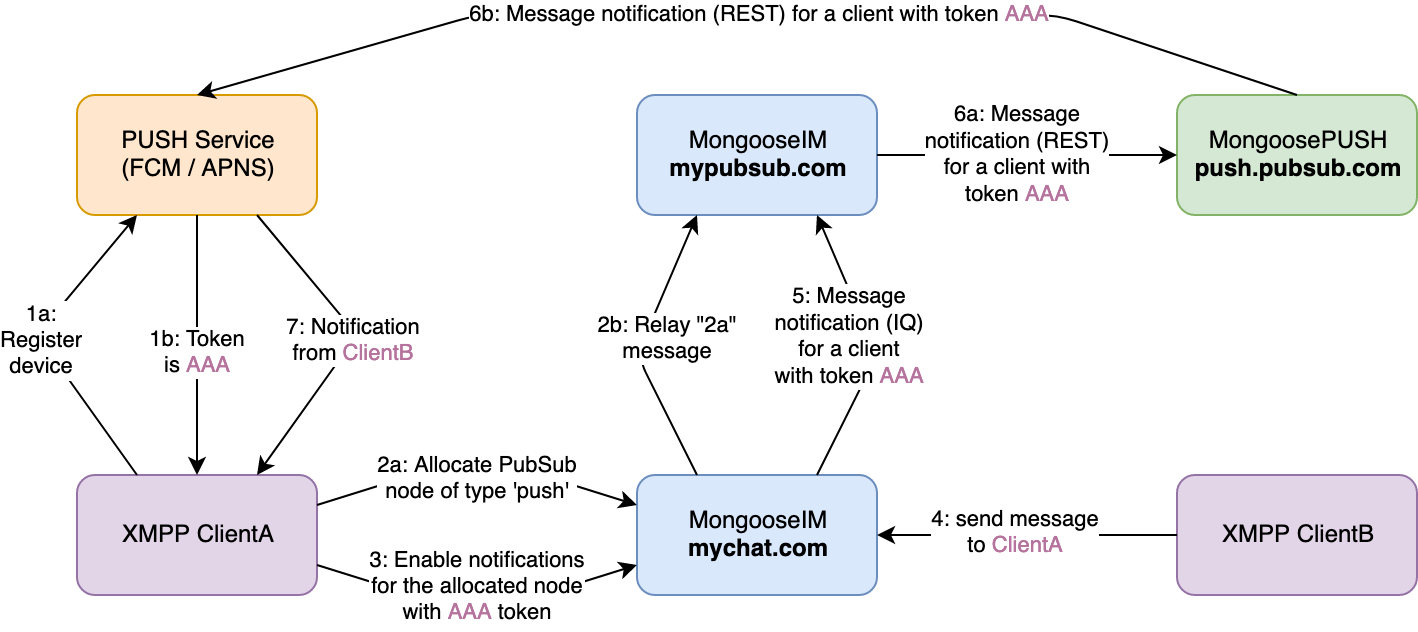 There are just a few things the XMPP client application needs to receive the push notifications. Depending on whether you plan to use PubSub-full or PubSub-less configuration, some of the steps may be unnecessary.